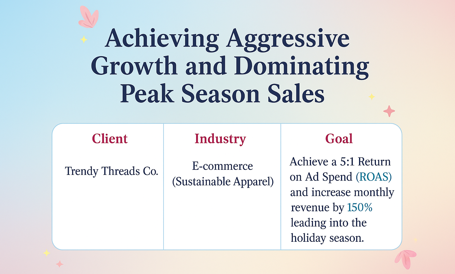 The strategic shift delivered immediate and sustained results, allowing TrendyThreads Co. to significantly surpass its revenue targets during its critical sales period.